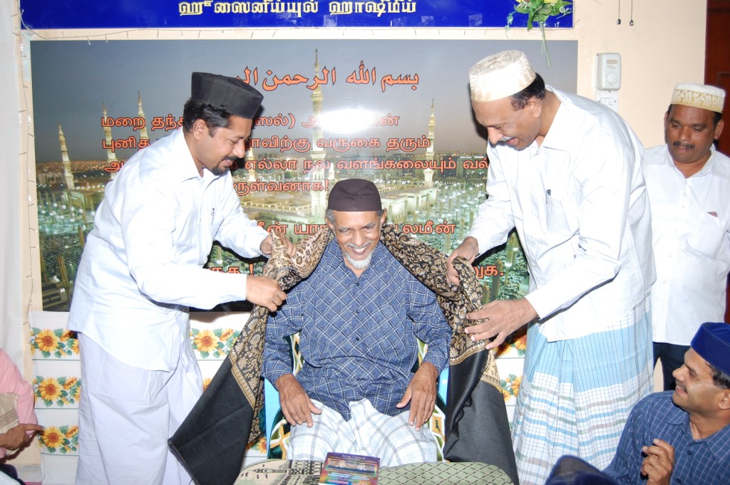 நிர்வாகத் தலைவர் சஹாபுதீன், முஹம்மது யூசுப், ஷாஜகான்அப்பாஸ், காதர்ஷாகிப், கிளியனூர் இஸ்மத், அதிரை ஷரபுத்தீன், மதுக்கூர் பாடகர் முஹம்மது தாவுது, சிராஜ்தீன், சாகுல்ஹமீது, அபுசாலிஹ், மற்றும் அக்பர்ஷாஜகான், மன்னார்குடி ஷேக்தாவுது, ஷேக்மைதீன், திருமக்கோட்டை பக்ருதீன், தாஜ்தீன், அலாவுதீன், வாவா முஹம்மது, அபுல்பஸர், அபுதாபி ஜெகபர்சாதிக்